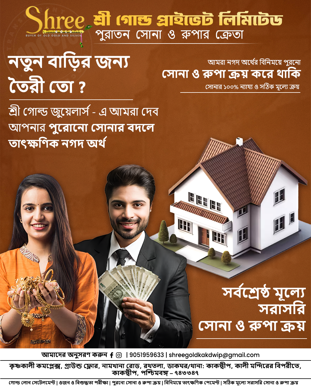 Dreaming of a new home or planning something big? At Shree Gold Pvt. Ltd., we help you make your dreams real with instant financial support through your gold’s true value. With over 25 years of trust, we ensure a safe, transparent, and rewarding process, giving you the best price and on-the-spot payment for your old gold and silver.